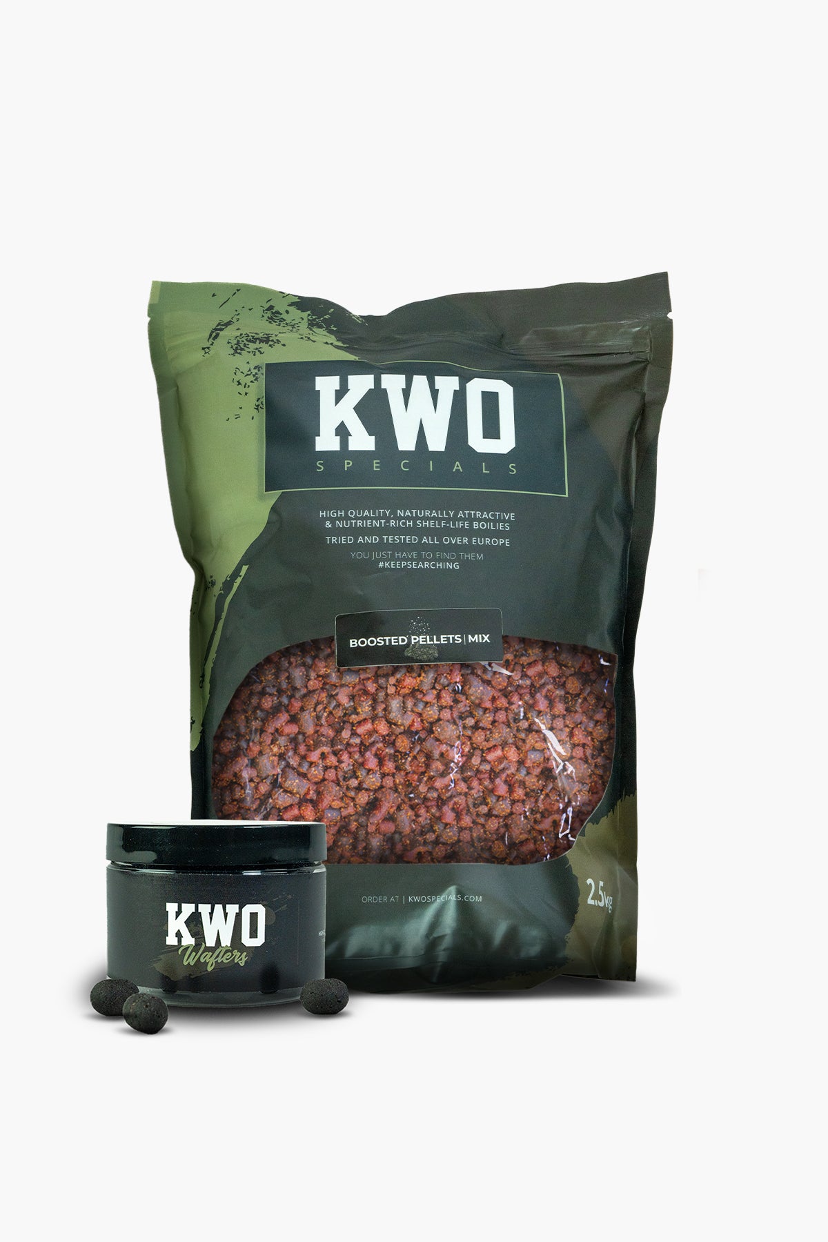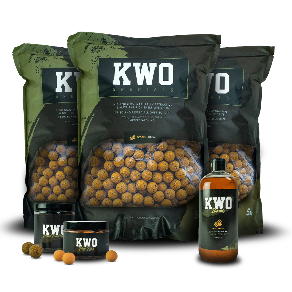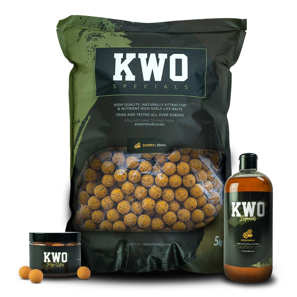 Of je net begint of al jaren vist: met de KWO Specials heb je aas in handen dat werkt. Onze range bestaat uit boilies, pop-ups, wafters, pellets, hard hookbaits, boosters en partikels. Alles is ontwikkeld met topvissers, getest op verschillende wateren en verantwoordelijk voor duizenden vangsten tot wel 35 kilo.
