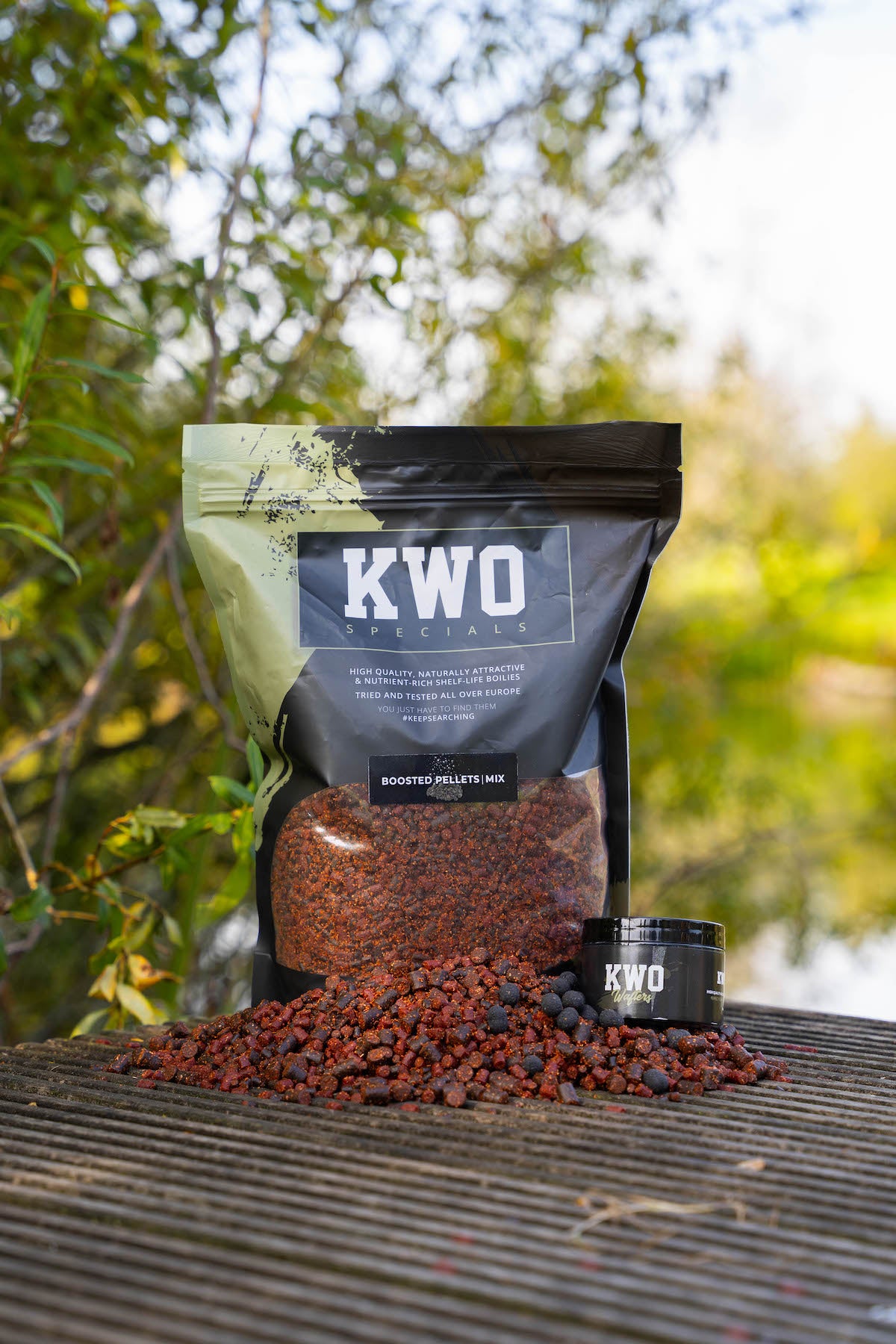 De KWO Specials zijn niet bedacht achter een bureau, maar ontwikkeld aan de waterkant. Samen met topvissers en aasexperts die precies weten wat werkt, onder alle omstandigheden. We testen zelf op verschillende wateren en luisteren goed naar de feedback van onze klanten. Want alleen als je blijft doorontwikkelen in de praktijk, weet je zeker dat een boilie écht werkt.