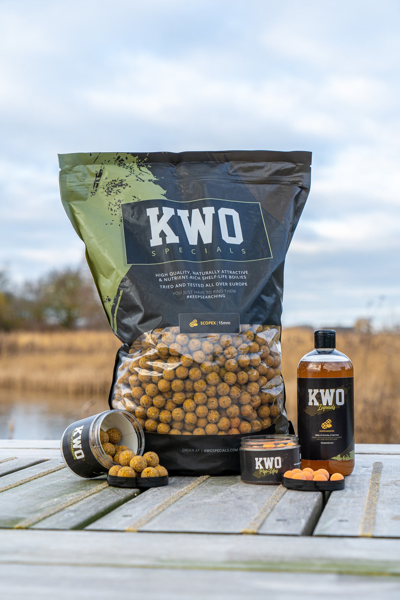 Of je net begint of al jaren vist: met de KWO Specials heb je aas in handen dat werkt. Onze range bestaat uit boilies, pop-ups, wafters, pellets, hard hookbaits, boosters en partikels. Alles is ontwikkeld met topvissers, getest op verschillende wateren en verantwoordelijk voor duizenden vangsten tot wel 35 kilo.