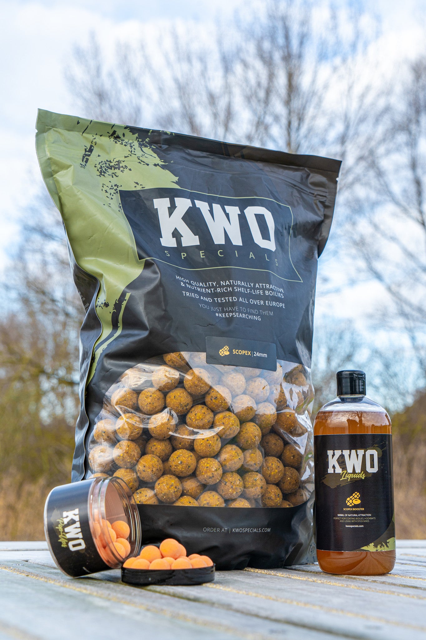 De KWO Specials zijn verkrijgbaar in drie smaken die zich al keer op keer bewezen hebben. Krill is onze eiwitbom: super attractief en perfect voor grote wateren of langere campagnes. Scopex is een echte allrounder met een romige, lichtzoete geur waar karpers het hele jaar op blijven azen. En Spice? Die is kruidig, pittig en ideaal om dressuur te doorbreken op lastige of drukbeviste wateren.